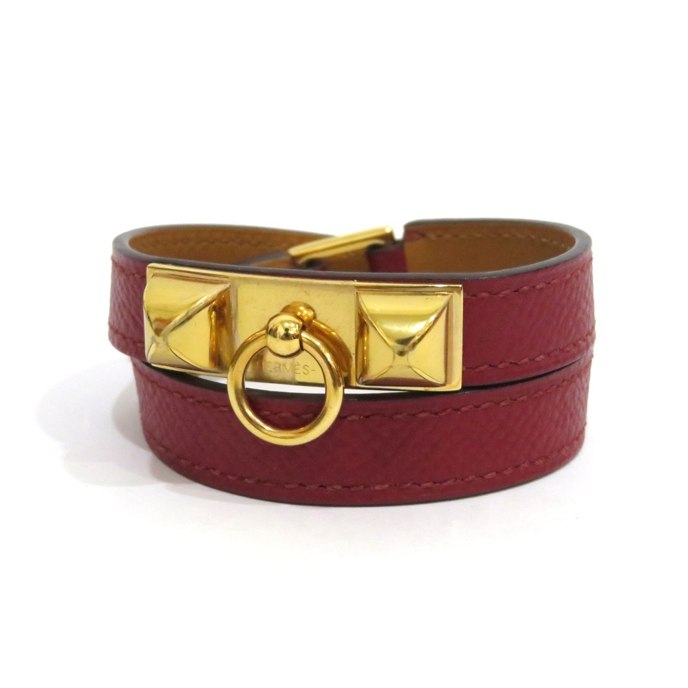 - 中古 美品 エルメス 小物 コリエドシアンドゥブルトゥール ブレスレット Aランク エプソン レッド×ゴールド X刻印【送料無料】【名谷店】