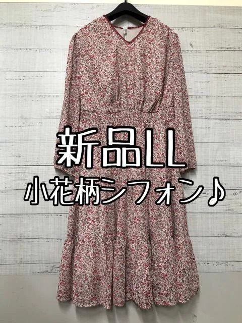 - 新品☆LL♪ピンクベージュ系♪小花柄のロマンティックワンピース☆c528