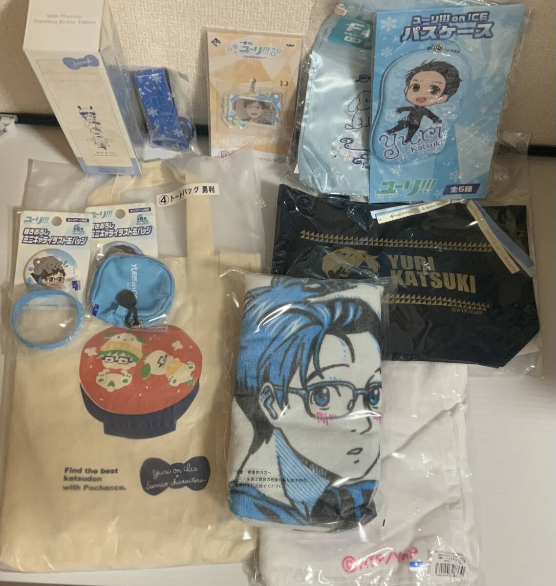 - ユーリ!!! on ICE ユーリオンアイス 勝生勇利 グッズ詰め合わせ タオル/ポーチ/トートバッグ/スリムサーモステンレスボトル