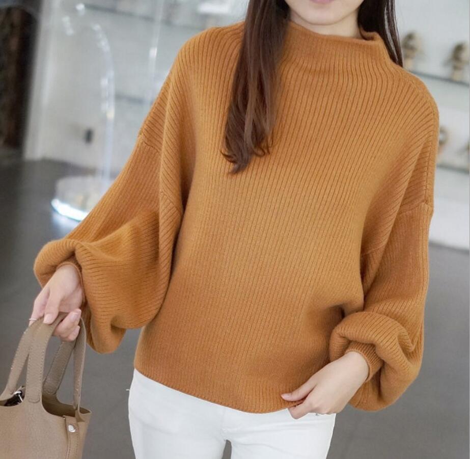 - 秋冬美品*オシャレ 可愛い大人 セーター ふんわり袖 立ち襟 暖かい 20代30代40代50代 ニットセーター ニットトップス きれいめ*キャメル