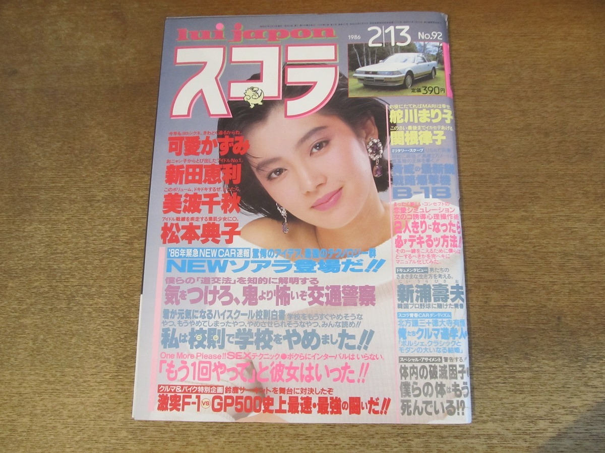 > 2410TN●スコラ 92/1986昭和61.2.13●表紙:麻生祐未/可愛かずみ/新田恵利×秋元康対談/松本典子/古村比呂/北方謙三 徳大寺有恒