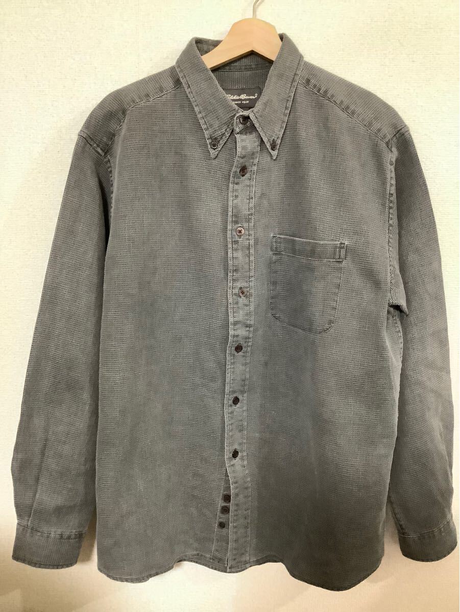 - eddie-bauer エディーバウアー 長袖シャツ ボタンダウンシャツ グレー アウトドア キャンプ メンズ 古着 L