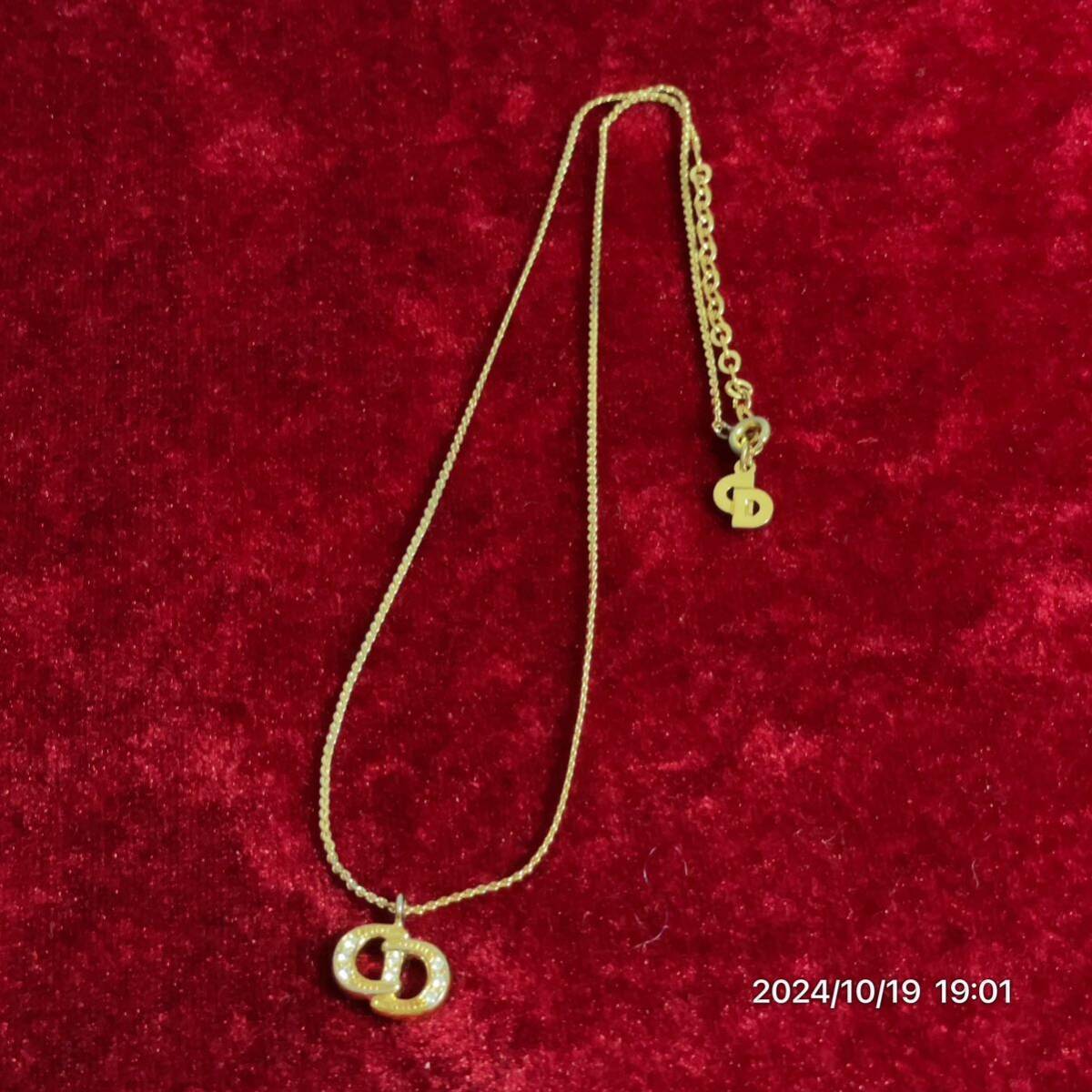 > Dior クリスチャン ディオール CDロゴ ラインストーン ゴールドカラーボディ ネックレス ペンダント アクセサリー