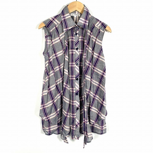 - ナラカミーチェ NARA CAMICIE ノースリーブシャツ ブラウス チェック 紺 ネイビー系 0 XS相当 レディース