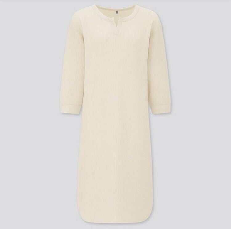 - 【中古】UNIQLO ユニクロ ワッフルキーネックワンピース(7部袖)ホワイト サイズS