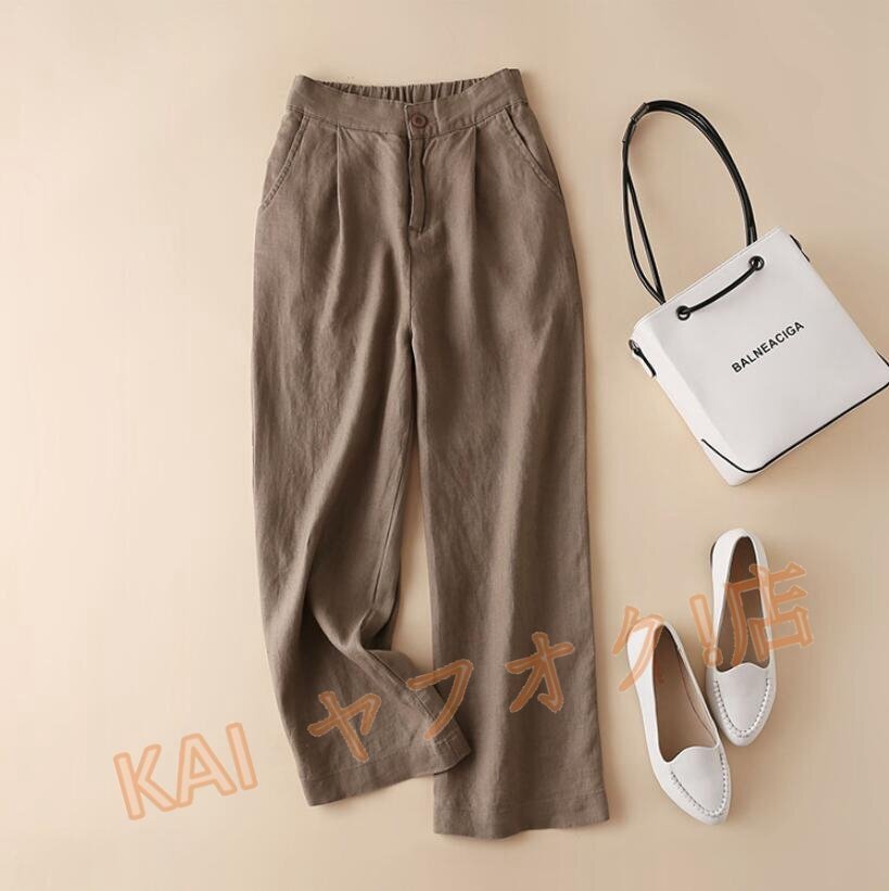 - ☆新品サイズ選択可 カジュアル ゆったり ボトムス パンツ 無地 綿麻 ルーズパンツ ウエストゴム ワイドパンツ チョコ