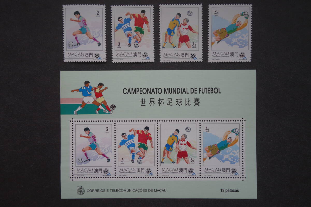 - 外国切手: マカオ切手 「1994 FIFAワールドカップ」 小型シートと単片4種完 未使用