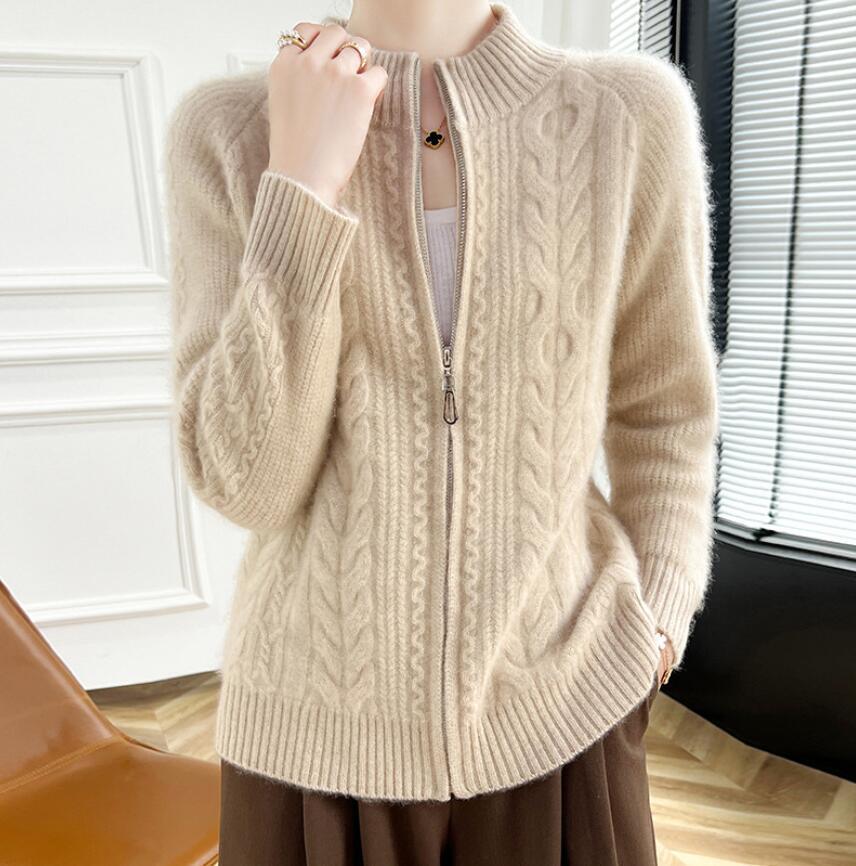 - 秋冬美品*ニットカーディガン ジップアップ アウター ミンクカシミヤ混 セーター 長袖 トップス 羽織り 前開き 着痩せ アウター*ベージュ