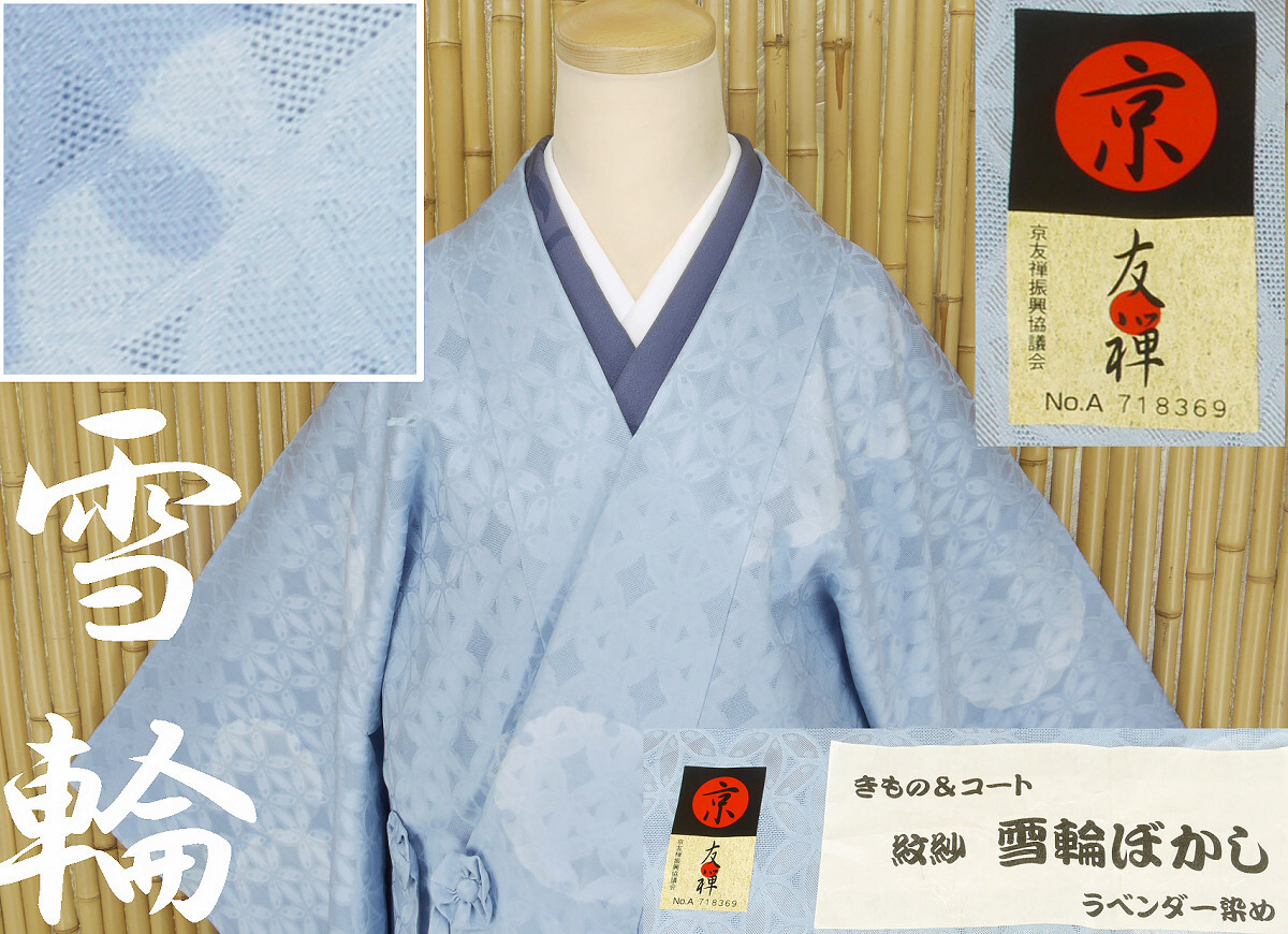 > 【京かんざし】z-513★紋紗織ロング道中着コート 京友禅 雪輪ぼかし ラベンダー染め 単 春~秋の3シーズン 新品仕立て上がり★即決送料無料
