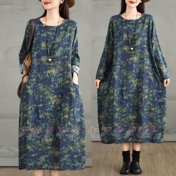 - ☆新品サイズ選択可 ロングワンピース オシャレ 綿麻ワンピース レディース 花柄ワンピース きれいめ ゆったり