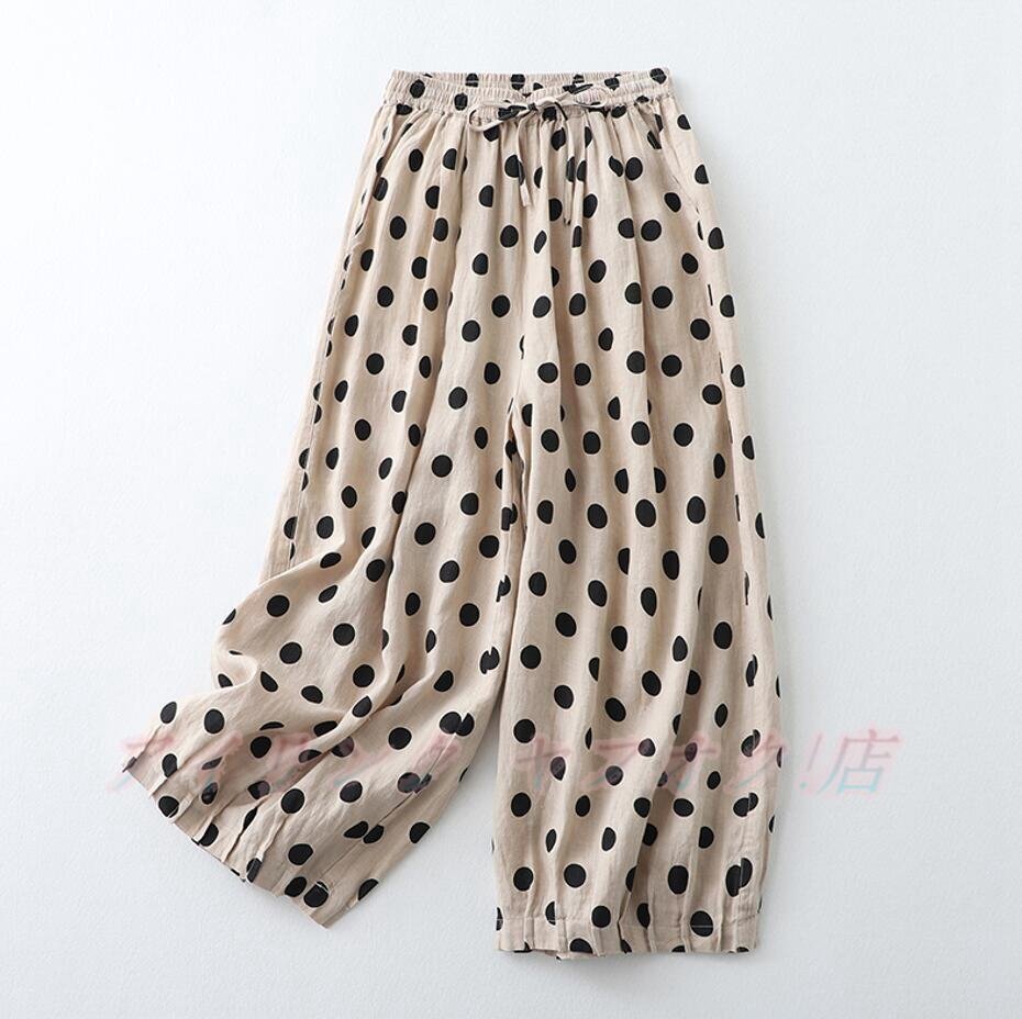 - ☆新品サイズ選択可 春夏 リネンパンツ レディース 水玉柄 綿麻 ボトムス きれいめ ワイドパンツ 大きいサイズ ウエストゴム