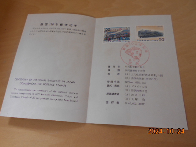 - 記念切手 鉄道100年 タトウ 1972 昭和47年10月14日 徳島郵便局発行日消印 初日カバー 画像現状渡し