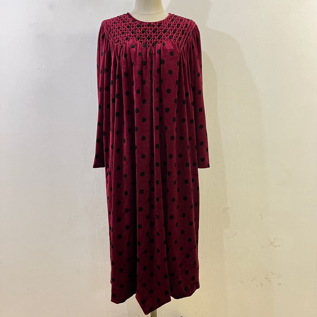 - ATELIER DOREE アトリエドール ベロアワンピース ロングワンピース ベルベット 総柄ワンピース 水玉柄 デザイン 赤【送料一律/同梱可能】D