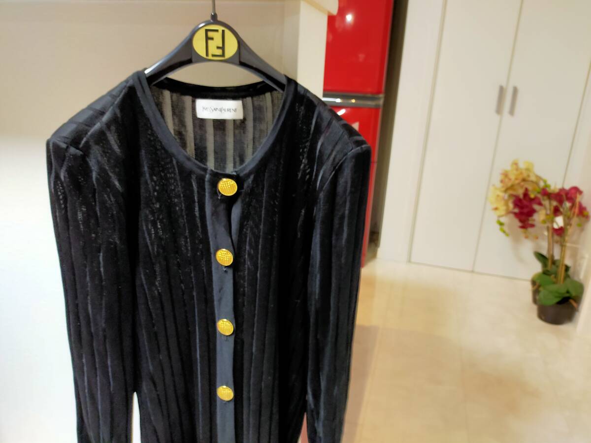 - イブサンローラン ロングカーディガン ブラック 金ボタン M