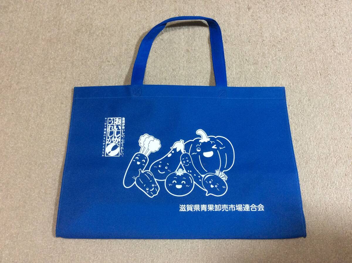- 新品未使用 おいしが・うれしが 滋賀県青果卸売市場連合会 トートバッグ エコバッグ 手提げカバン 青色