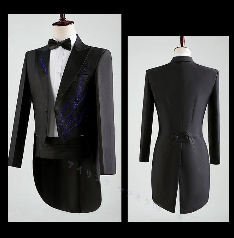 - 新品☆上質 メンズ スーツ ブルーストーン+黒 上下セット ストーン 燕尾服 タキシード宮廷S M L-3XL演歌 歌手衣装舞台演奏会お色選択可