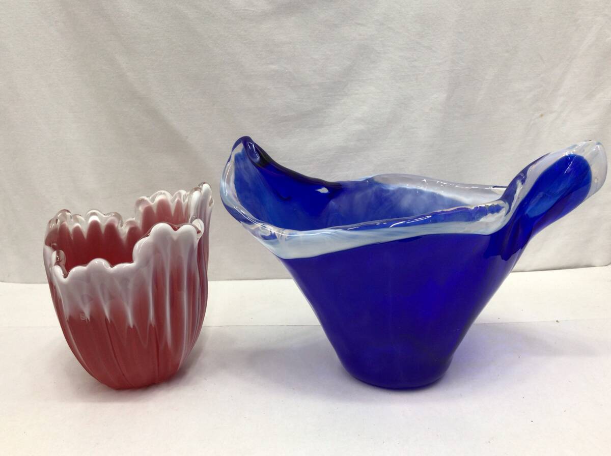 - 花瓶 2点セット フラワーベース レトロ ガラス ブルー レッド 241029s1