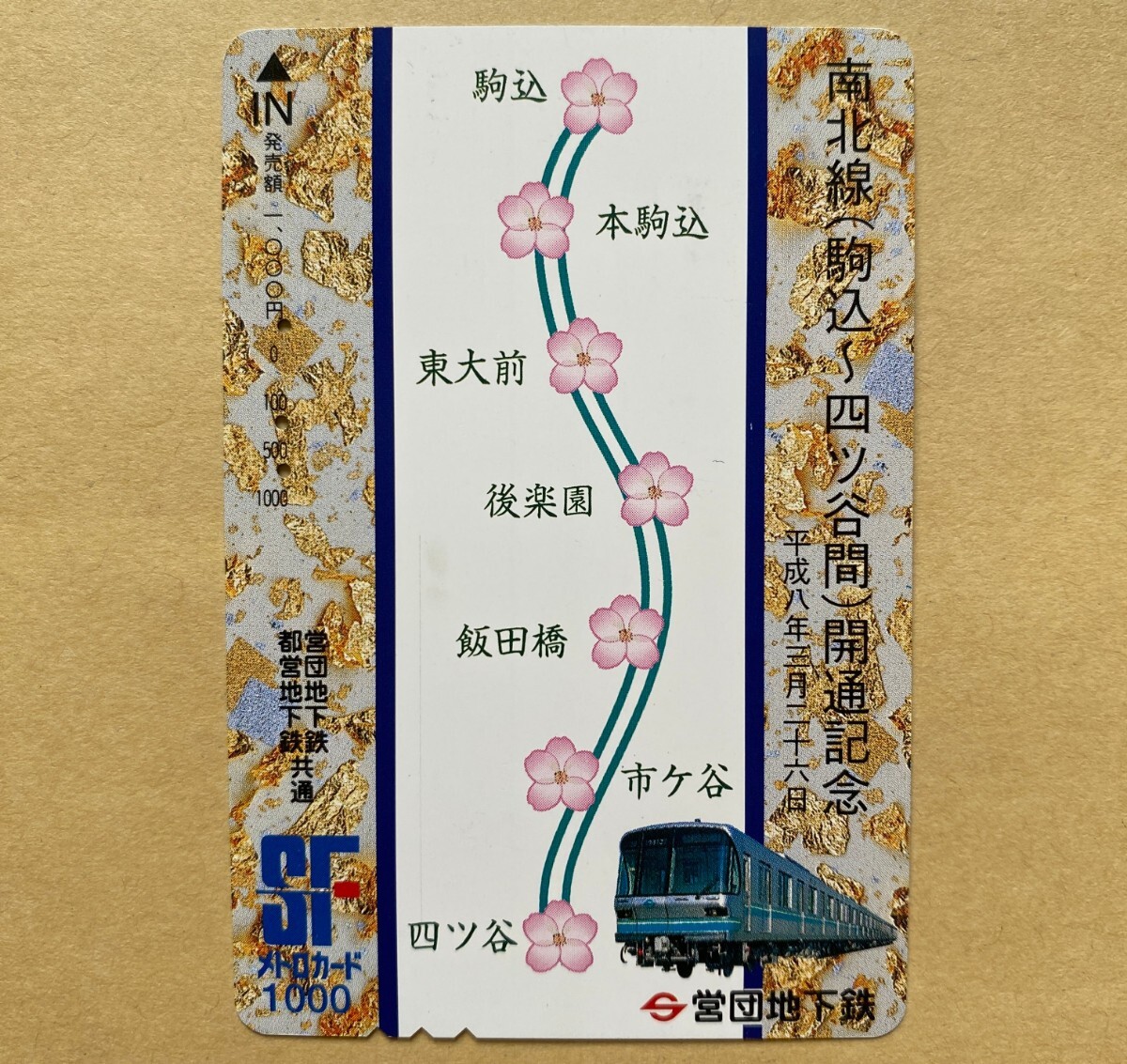 - 【使用済】 メトロカード 営団地下鉄 東京メトロ 南北線(駒込~四ツ谷間)開通記念 平成八年三月二十六日