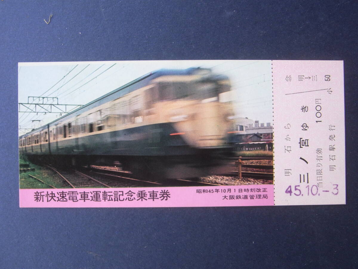 - 新快速電車運転 記念乗車券 昭和45年10月 大阪鉄道管理局 明石駅発行