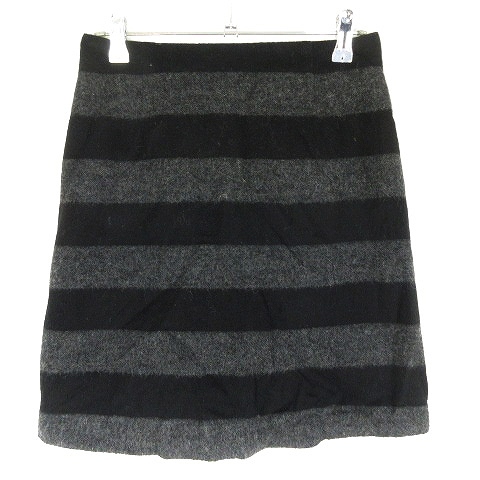 > ラボラトリーワーク ニット スカート タイト ミニ ひざ丈 バックファスナー ウール 薄手 ボーダー M 黒 グレー ブラック レディース