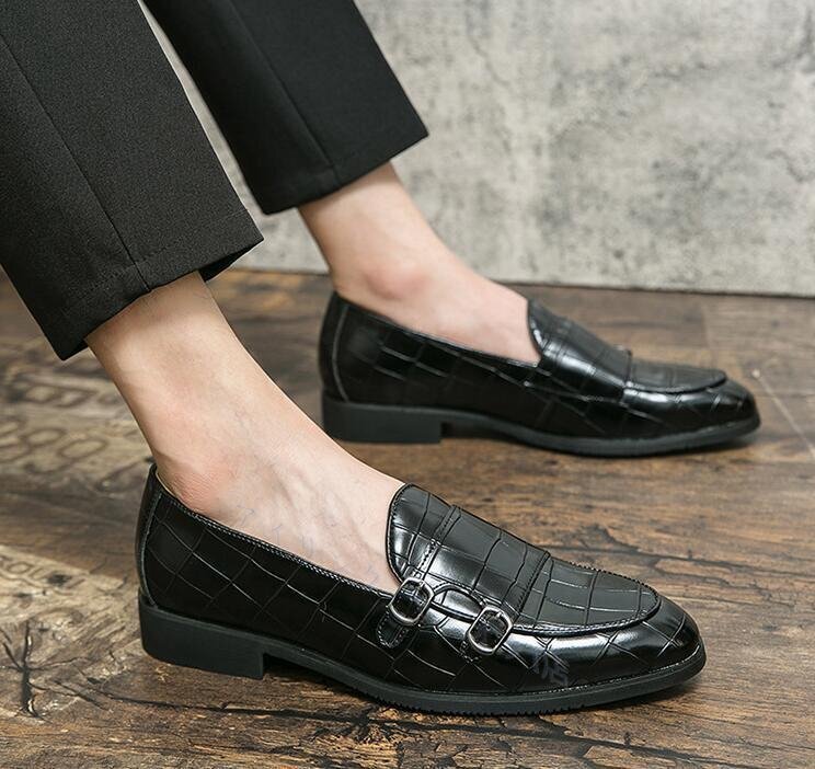 - 新品☆ビジネスシューズ メンズ モンクストラップ 職人手作り レザーシューズ 鰐柄 フォーマル 革靴大きいサイズ24~29cm選択 ブラック
