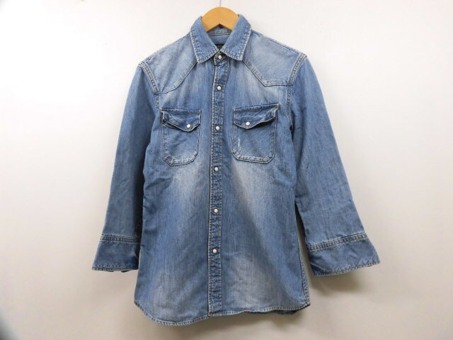 - nano universe ナノユニバース デニムウエスタンシャツ デニムシャツ 五分袖 胸ポケット 長袖トップス ブルー 青 Sサイズ