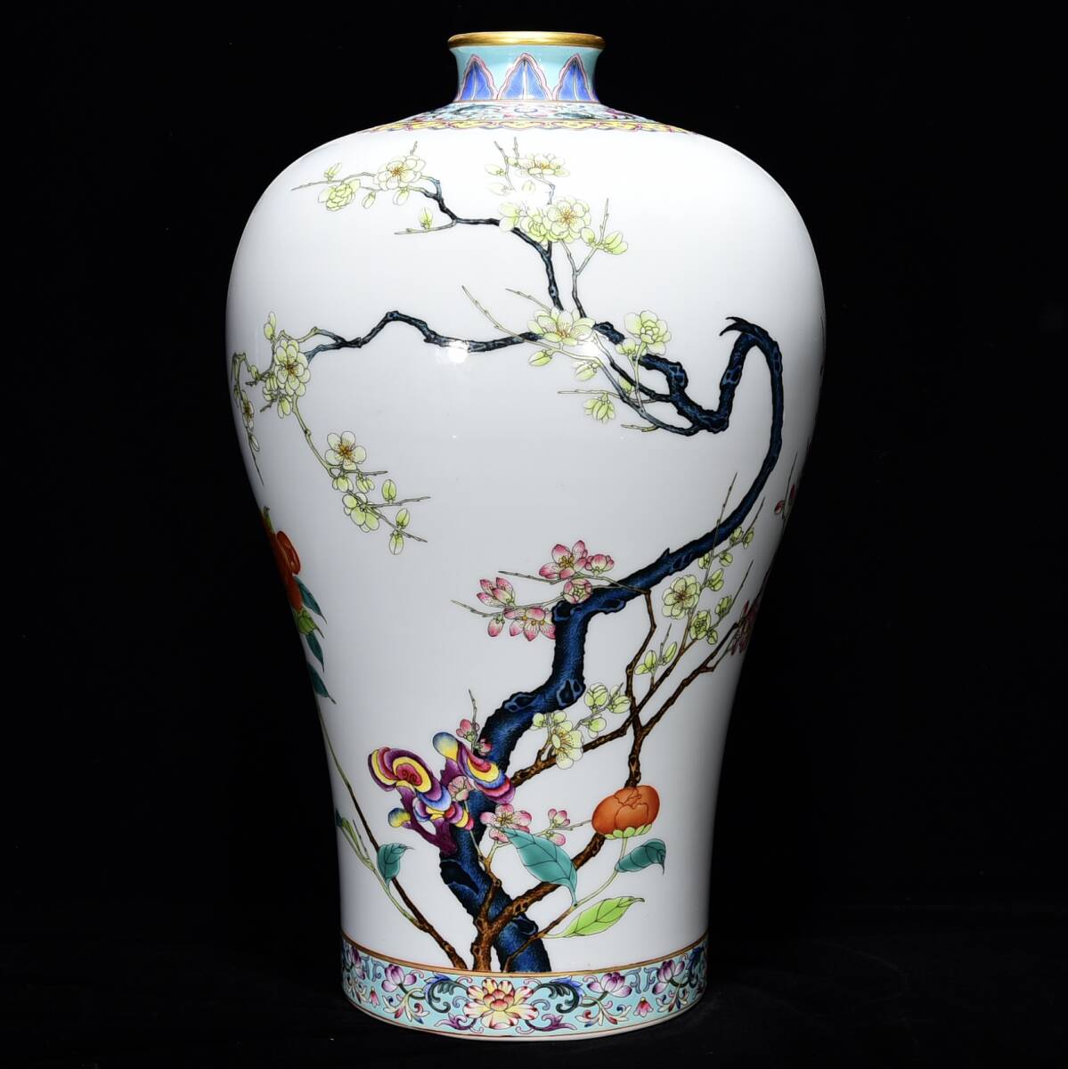 - ◆蔵出◆古美術 中国古玩 大清雍正年製款 粉彩 描金 花卉紋梅瓶 時代物 A06