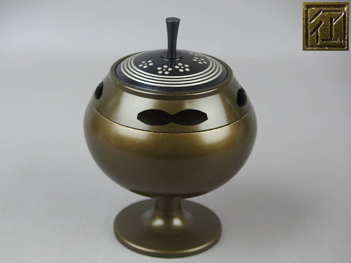 - 【骨董・茶道具】★金工 在銘★★輪線梅文香炉 fp108vb.8 香道具