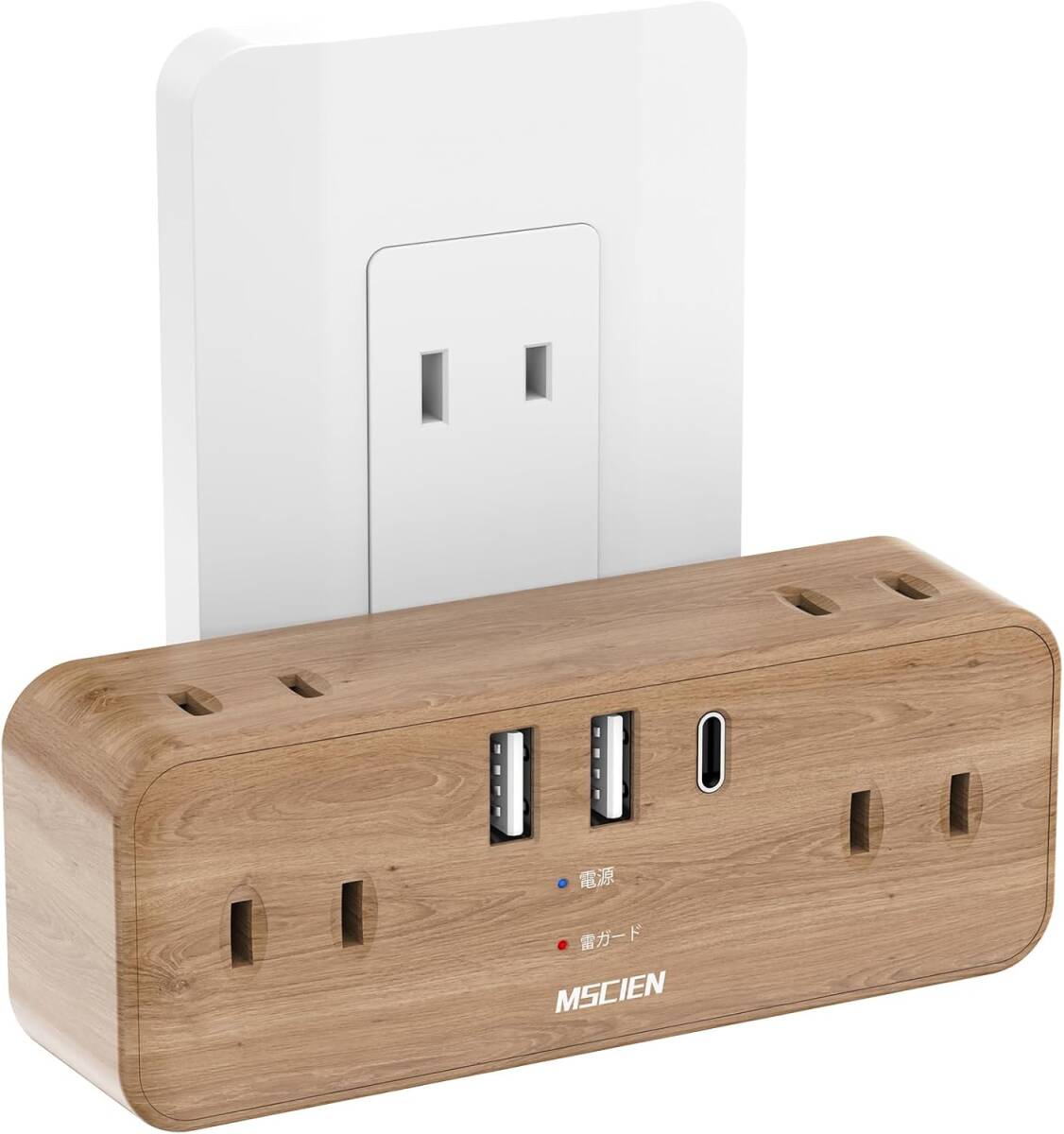 - 【新品】MSCIEN 電源タップ USB付き 木目調 タコ足 コンセント 雷ガード 6個AC口 1個USB-C スイングプラグ コンパクト コンセントタップ
