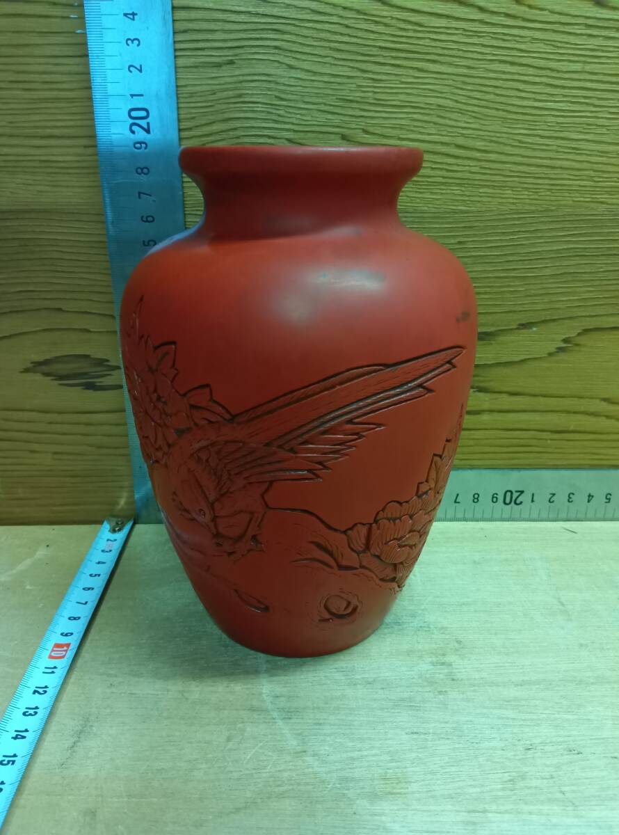 - 24110215 堆朱 村上木彫堆朱 花瓶 花器 花生け 亀花瓶 一輪挿し 花立 つぼ型 花器 鳥 山水