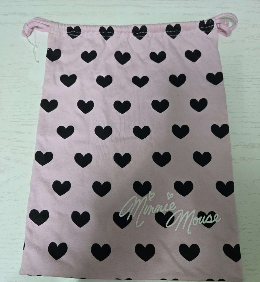 - 巾着袋 未使用 新品 ミニーマウス ハート うすピンク 黒ブラック ディズニー パジャマ袋 かばん 入れ物 雑貨