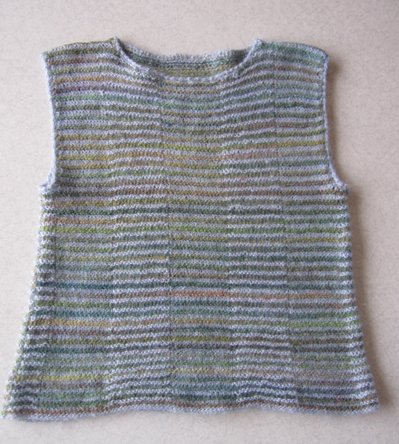 - ニット モヘア ベスト 手編み ハンドメイド 細めのマルチボーダー 水色×グリーン系 秋冬