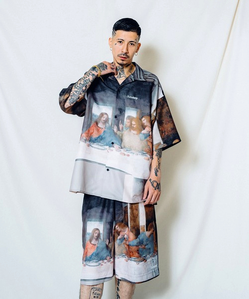 > ●美品 SUBCIETY サブサエティ オープンカラーシャツ レオナルドダヴィンチ 最後の晩餐 転写プリント サイズS