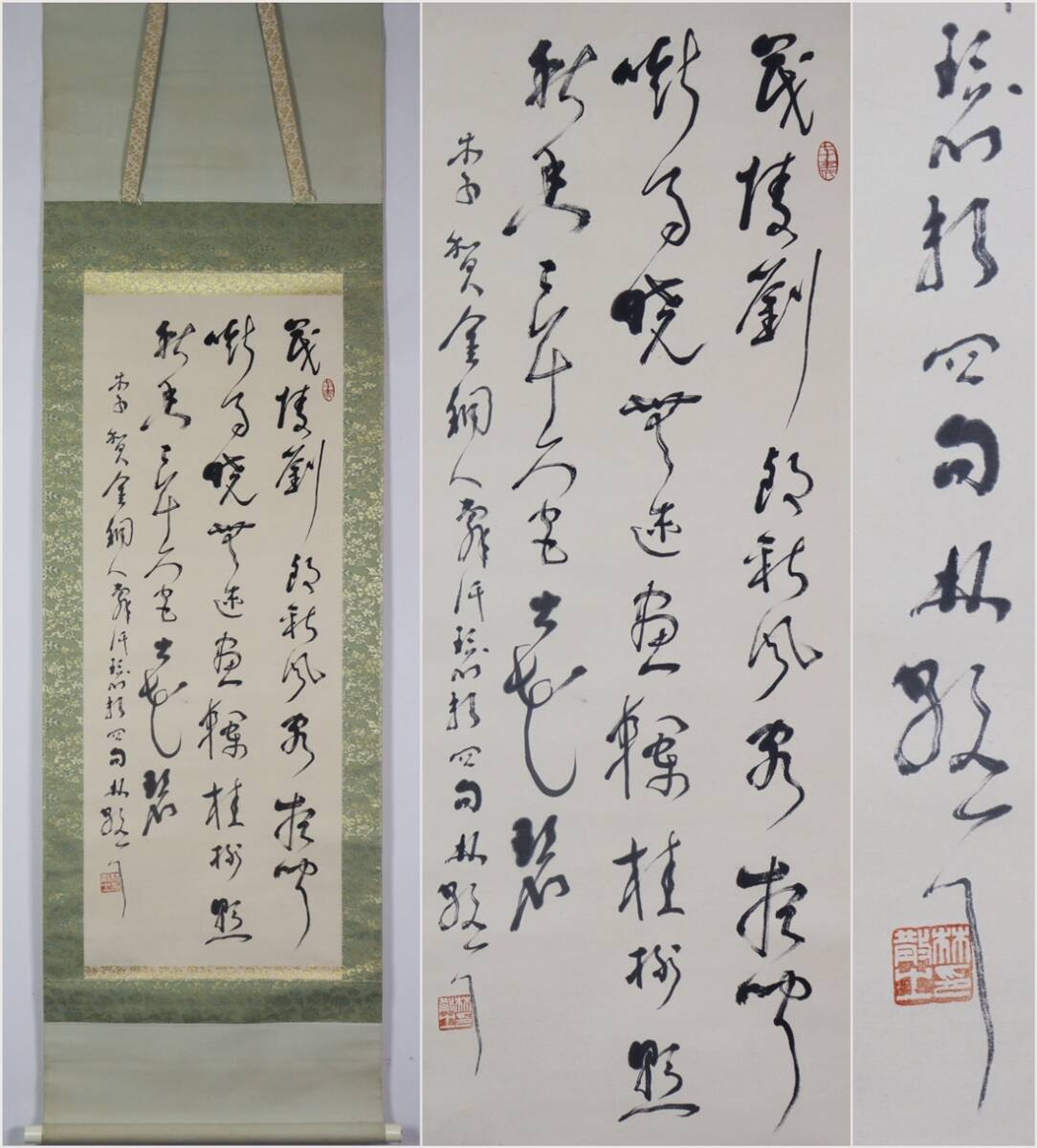 > 古美術 掛け軸 中国・近現代 「林散之書」 紙本 【草書】 立軸 書道 巻き物 肉筆保証 唐物 古画 画心34x105cm LT-241146