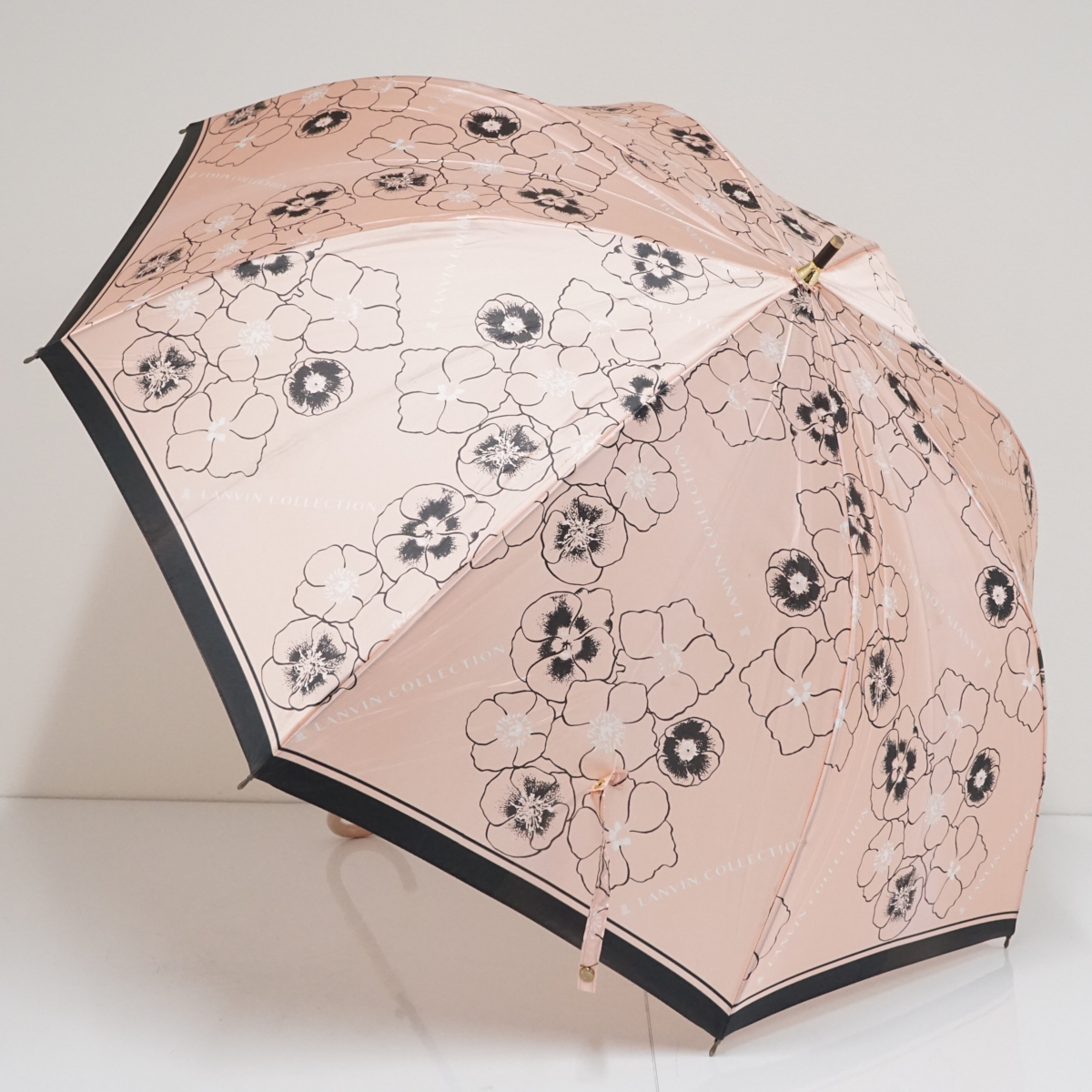 > LANVIN COLLECTION ランバンコレクション 傘 USED品 ピンク フラワープリント 花 グラスファイバーフレーム ジャンプ 60cm S1853
