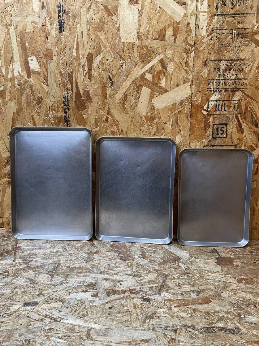 > C(6780)ステンレス 浅型 バット №14・15・16 業務用 3個 18-8 クローバー印 調理器具 厨房用品 店舗用 飲食店 浅型 角バット 中古品