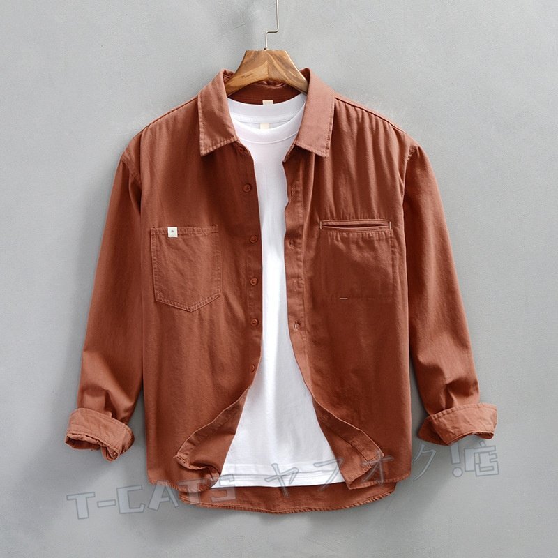 > ☆新品 トップス シャツジャケット カーゴシャツ ワークシャツ コットン 長袖シャツ メンズ? ウエスタン レンガの赤 L