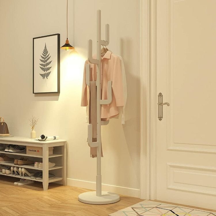 - ポールハンガー木製 衣類収納 ぽーるはんがー 省スペース コートハンガー 6個のフック付き 耐荷重 90kg ハンガーラック おしゃれ