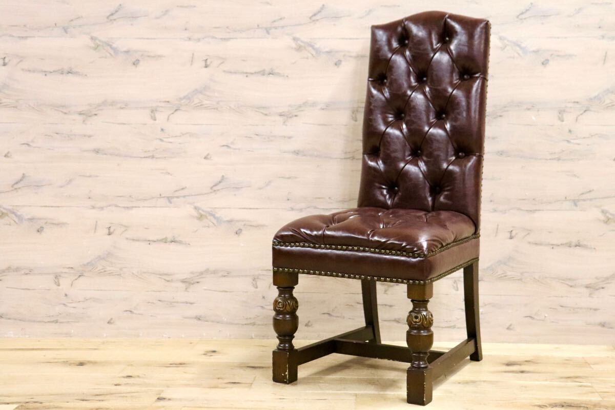 - GMHN321A○VINCENT / ヴィンセント ダイニングチェア アームレスチェア ハイバックチェア チェスターフィールド 鋲打 合皮 ダークブラウン
