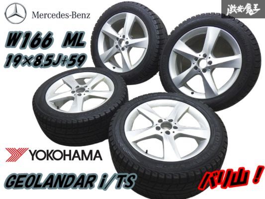 > ●【ベンツ W166 ML 純正 】19インチ 8.5J +59 PCD112 5穴 シルバー 4本+ ヨコハマ GEOLANDAR i/T-S バリ山スタッドレス 225/50R 棚