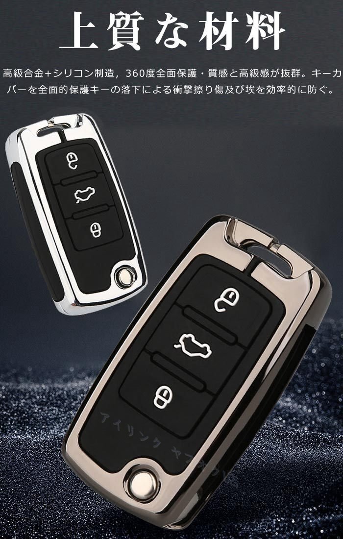- VW スマートキーケース フォルクスワーゲン VW キーカバー キーホルダー 亜鉛合金 シリコン 二重保護 防塵 耐衝撃 ☆2色/多形状選択/1点