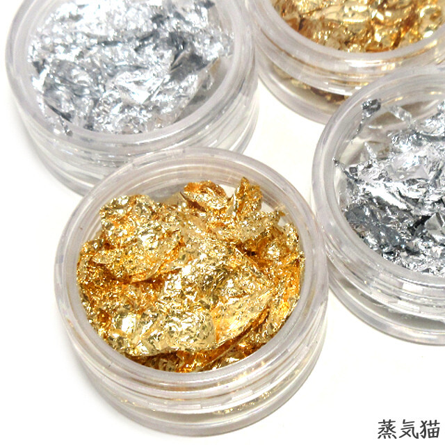- o7445 金箔・銀箔調ホイル4個【金箔ヘアアレンジ ネイルアート レジン ブライダル ハンドメイド用アクセサリーパーツ素材】蒸気猫パーツ