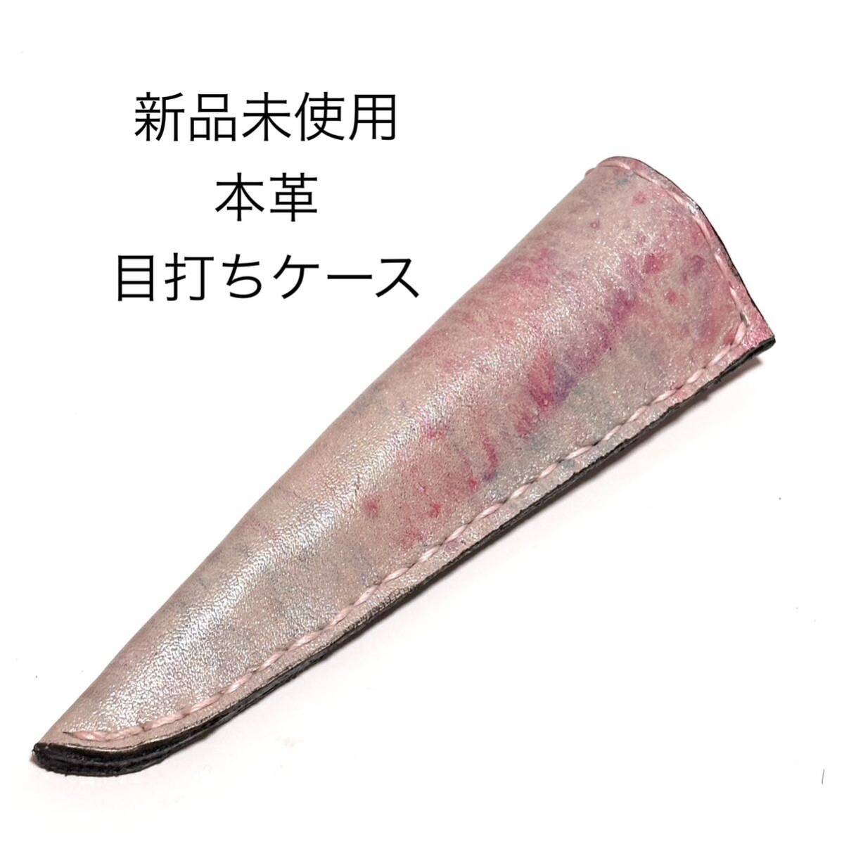 - 新品未使用 リアルレザー 本革目打ちケース マーブル柄 グレーピンク系 大理石柄 革小物 カバー ハサミケース