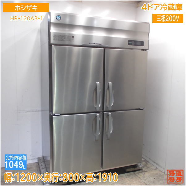 - ホシザキ 2022年 縦型4ドア冷蔵庫 HR-120A3-1 1200×800×1910 中古厨房/24K2508S