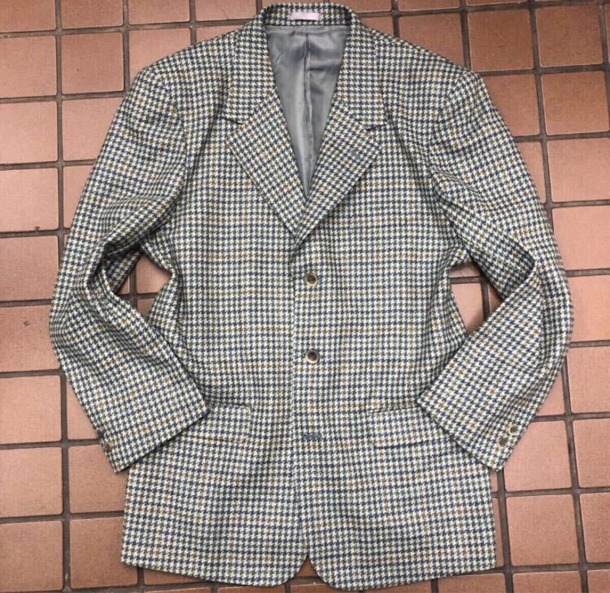 > 新品☆人気【サイズAB5 M相当★千鳥格子】3Bシングルジャケット グリーン 総裏 サイドベンツ ゴルフジャケット イタリー生地 ウール100%