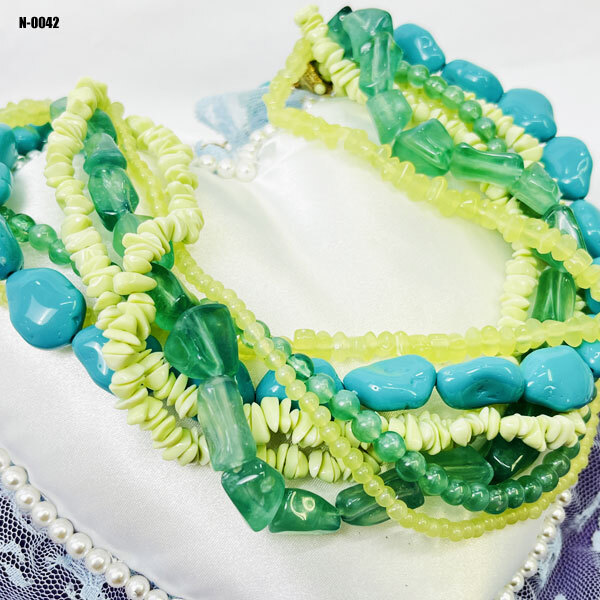 - 送料無料! エスニック調 アジアンファッション ターコイズ ビーズネックレス ◇N-0042