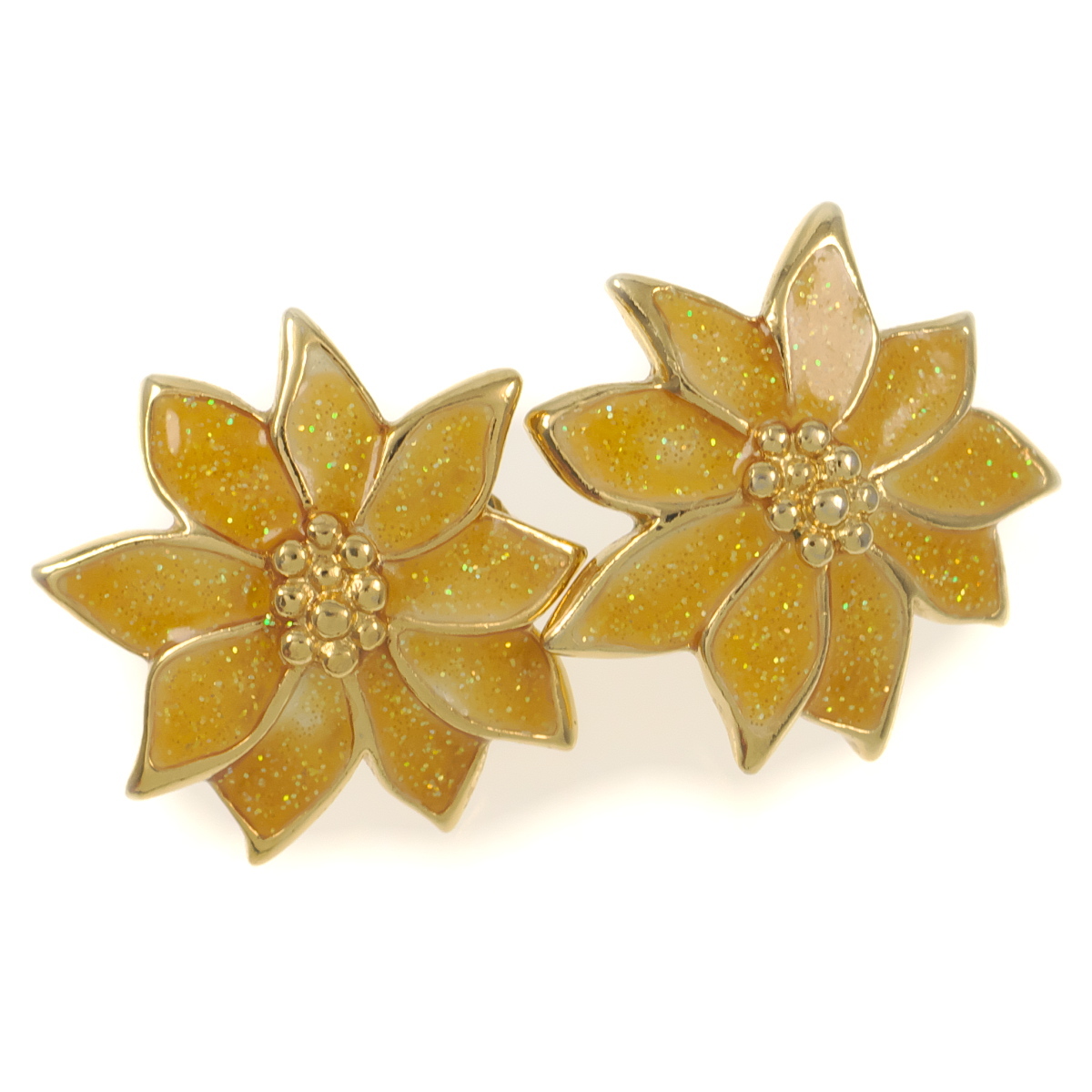 - A10139◆【(AVON)】◆ 1980s WHITE CHRISTMAS イエロー系エナメルペイントの花 フラワーモチーフ エイボン ◆ ヴィンテージイヤリング ◆