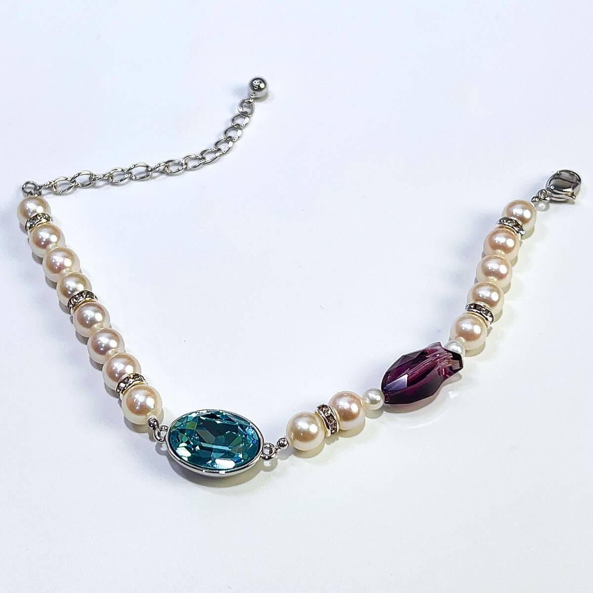 > SV925 AKOYA アコヤ ベビー パール ラインストーン ブレスレット 天然 本真珠 GP ホワイト レディース デザイン アクセサリー新品