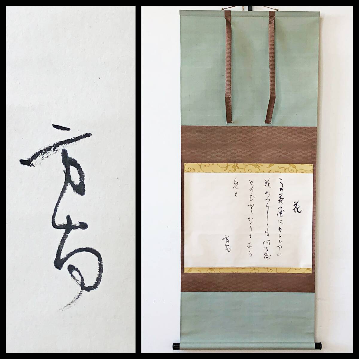 - 【真作】W263【田山方南 国史編修官 国宝鑑査 『カトレアの花』】掛軸/墨蹟/紙本/共箱