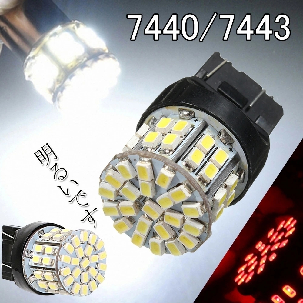 - T20 シングル球 7440 7443 LED バックライト ホワイト レッド DC 12V LEDランプ1206 50 SMD 2個セット 2色選択☆形状/多形状選択DJ2054